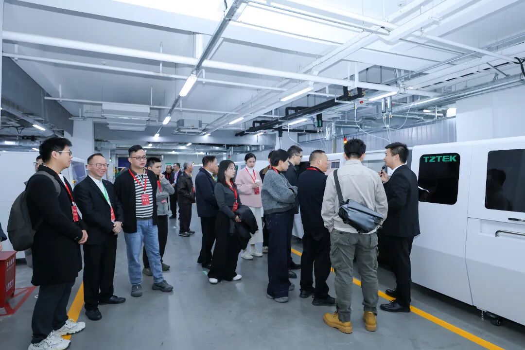 活动当天,与会嘉宾们还走进天准科技总部展厅与智能车间,实地感受技术驱动的制造变革。车间内,天准自研的LDI激光直接成像设备、AOI自动光学检测设备及CO2激光钻孔设备成为焦点,引得众多嘉宾驻足,与技术人员就设备性能、技术突破及应用场景展开深入探讨,现场交流气氛热烈。