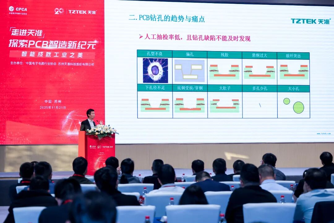 2025年11月21日,“智能成就工业之美——走进天准,探索PCB智造新纪元” 主题活动在苏州隆重举行。本次活动由中国电子电路行业协会(CPCA)与天准科技联合主办,吸引了来自行业协会、科研院所及知名企业的百余名业界代表参与。通过车间探访与技术论坛,与会嘉宾深入讨论了AI赋能PCB制造的前沿趋势与实践路径。